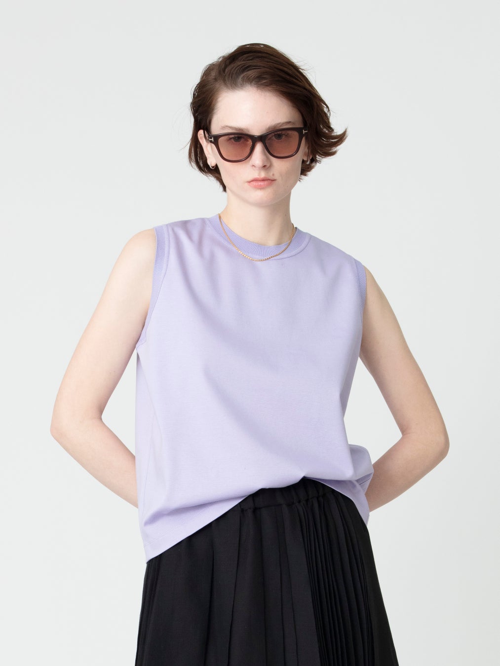 昨年多くの支持を集めたTシャツが、新たなカラー展開で再登場。さらに、今シーズンは新型のノースリーブトップを加え、より自由なスタイリングを提案いたします。