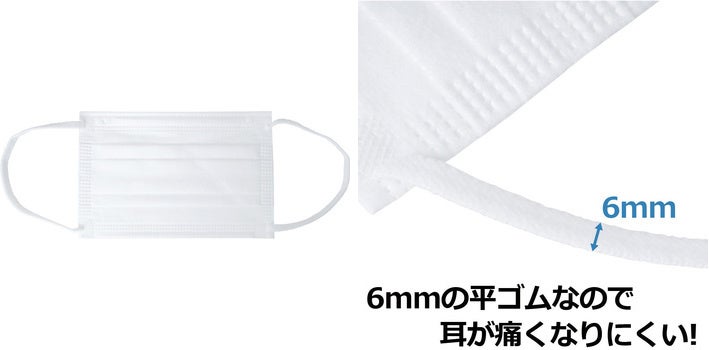 6mmの平ゴム形状なので、耳への当たりが柔らかく、よくある耳の痛みも軽減してくれます。
