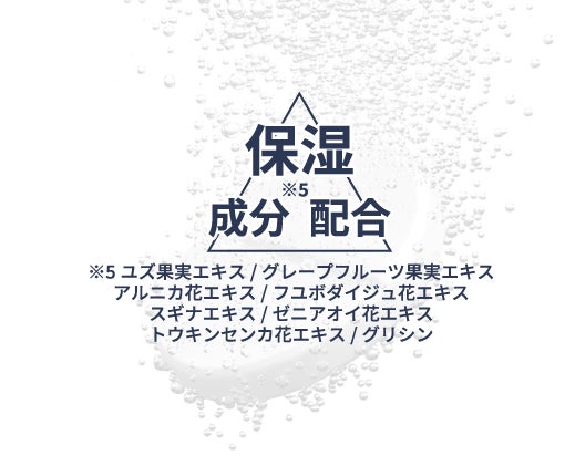 *5 ユズ果実エキス、グレープフルーツ果実エキス、アルニカ花エキス、フユボダイジュ花エキス、スギナエキス、ゼニアオイ花エキス、トウキンセンカ花エキス、グリシン