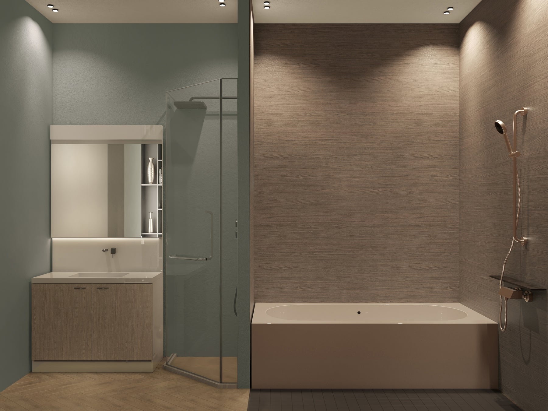 見た目のインパクトだけでなく、「長く住んでも飽きがこないこと」「入居後の暮らしが具体的にイメージできること」を重視し、色味・素材・照明計画まで含めた設計を行っています。