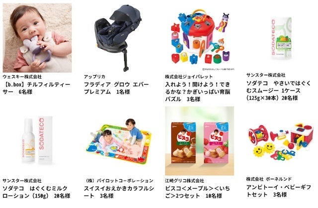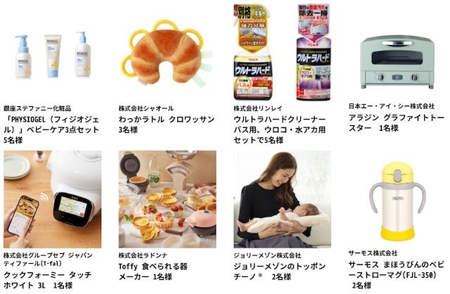いつもベビカムと一緒にプレママ・子育てしている皆さんを応援している企業の皆さんにご協力いただき、妊娠・育児中のママ・パパが絶対欲しくなる豪華プレゼントをたくさん用意しました!