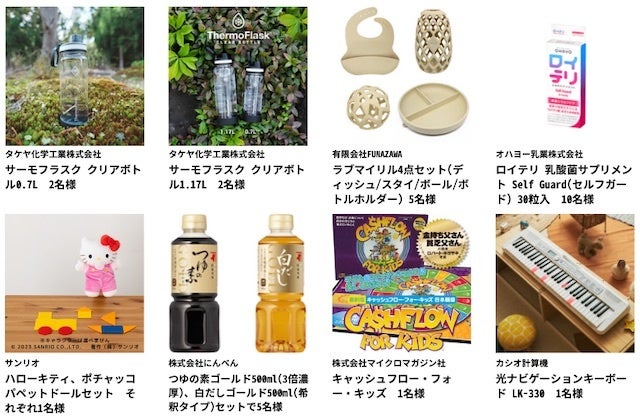 23社の子育て応援企業の協力のもと、ママ・パパがもらってうれしくなるような、人気の最新家電や知育玩具など、100点を超える豪華商品を準備しました!