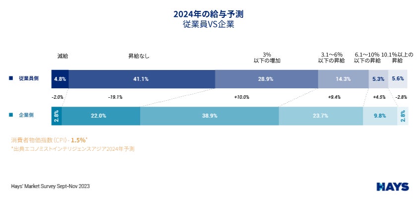 2024年の昇給、企業よりも従業員の方が悲観的