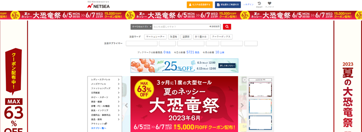 「NETSEA」は「ネットで仕入れ」の略称で、大手企業様から中小企業様まで、あらゆる法人様向けにサービスを提供しているBtoB卸モールです。