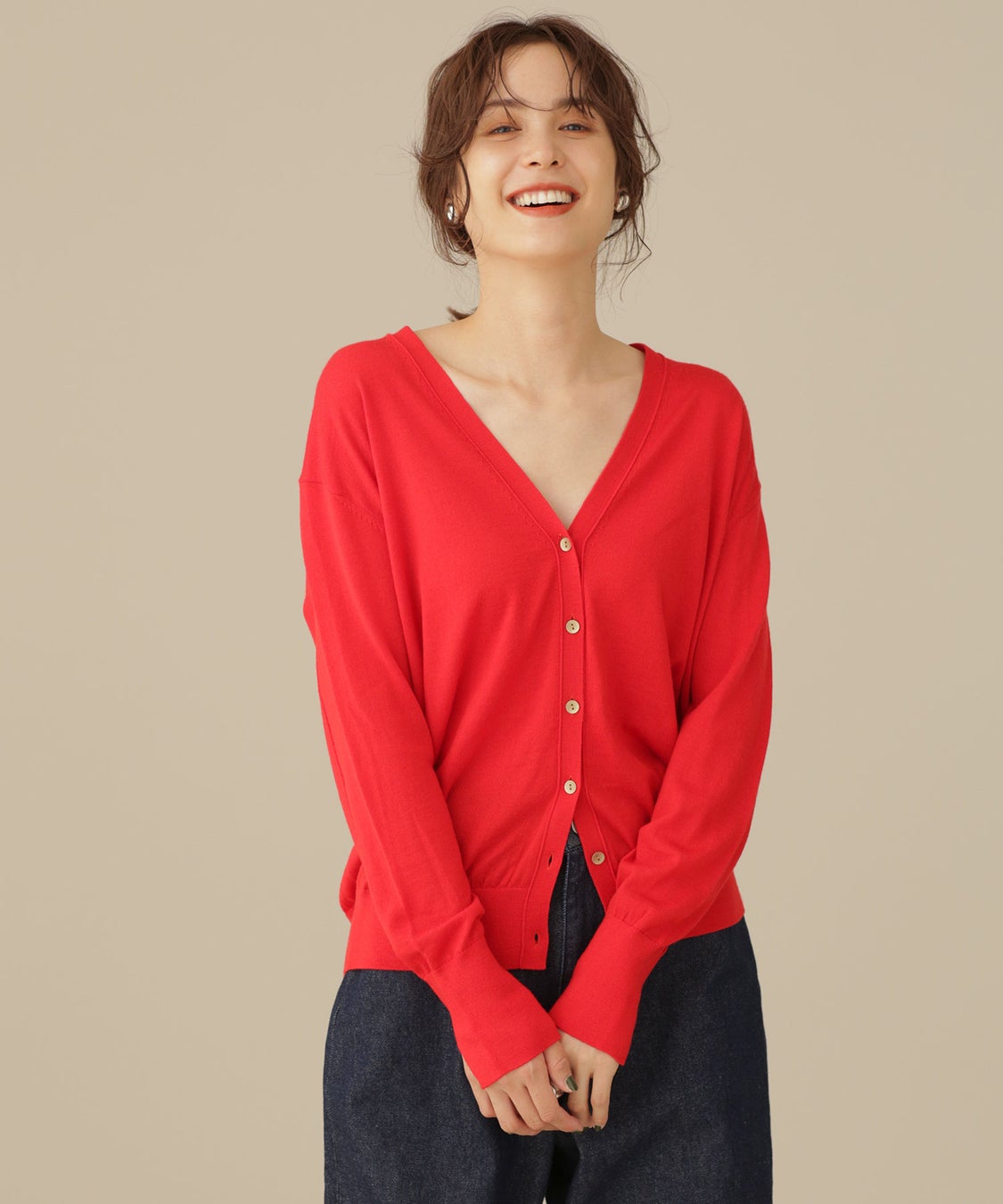 特殊な紡績方法で、毛玉を極限まで抑えたナノ・ユニバースオリジナル素材のVネックカーディガン。首元をシャープな印象にすっきりと見せる縦長のVネックや、上品なマットゴールドの薄型ボタンがポイントになるデザイン。合わせるボトムを選ばないので着回しやすく、同素材のトップスをインしてアンサンブルコーデもおすすめです。