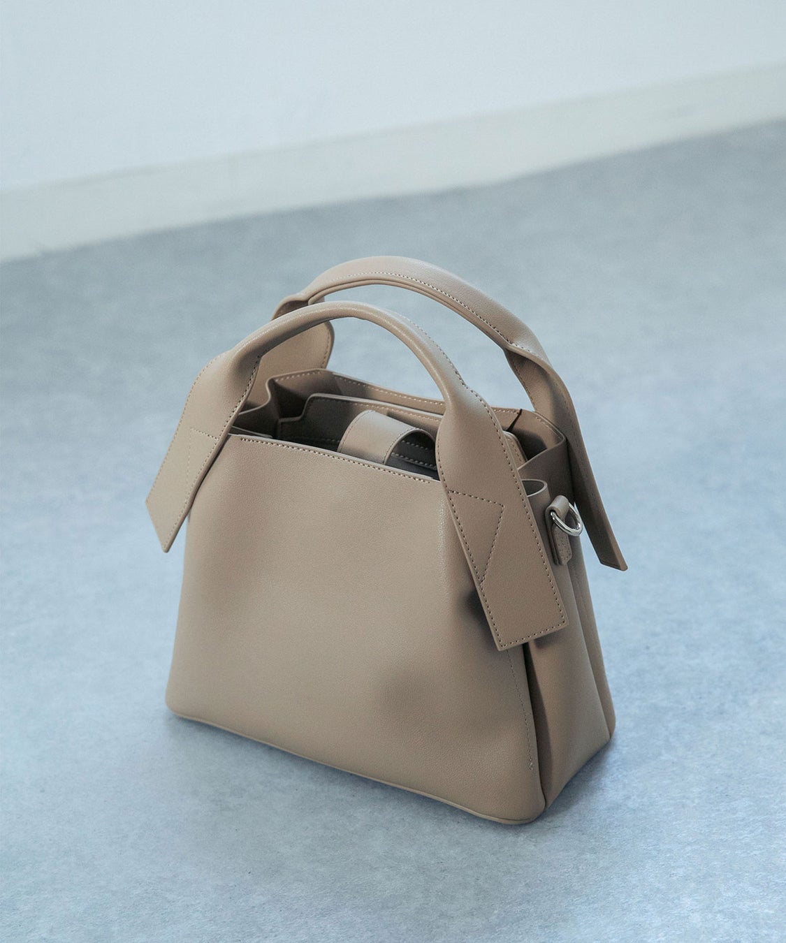 飾りのようなハンドルデザインが印象的なトートバッグ。コンパクトな見た目ながらも幅広のマチで収納力が高く、実用性も備えたひと品。艶やかな光沢のあるフェイクレザーが品の良さを演出し、コーディネートを格上げしてくれるプラスワンアイテムです。