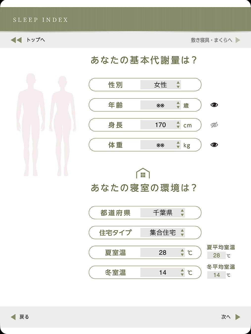 一人ひとりの基礎代謝を交え、さらにパーソナルなおすすめ寝具を提案します。