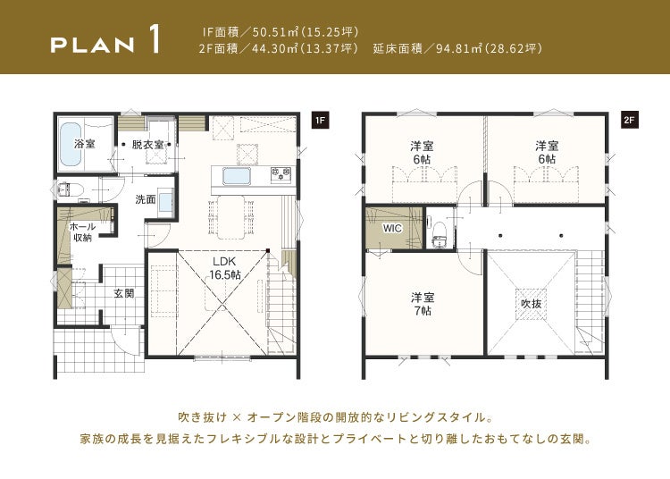 高い断熱性能を確保しながら、吹き抜けやオープン階段など意匠性の高いプランを用意しています。