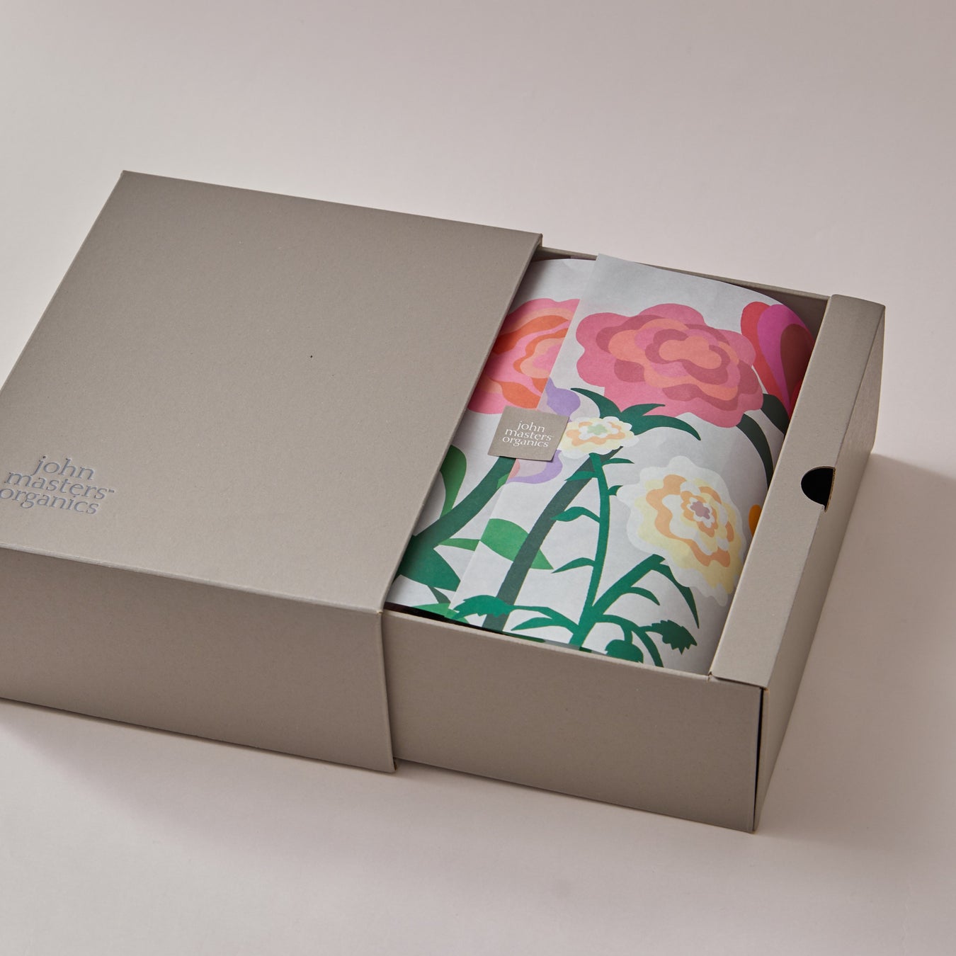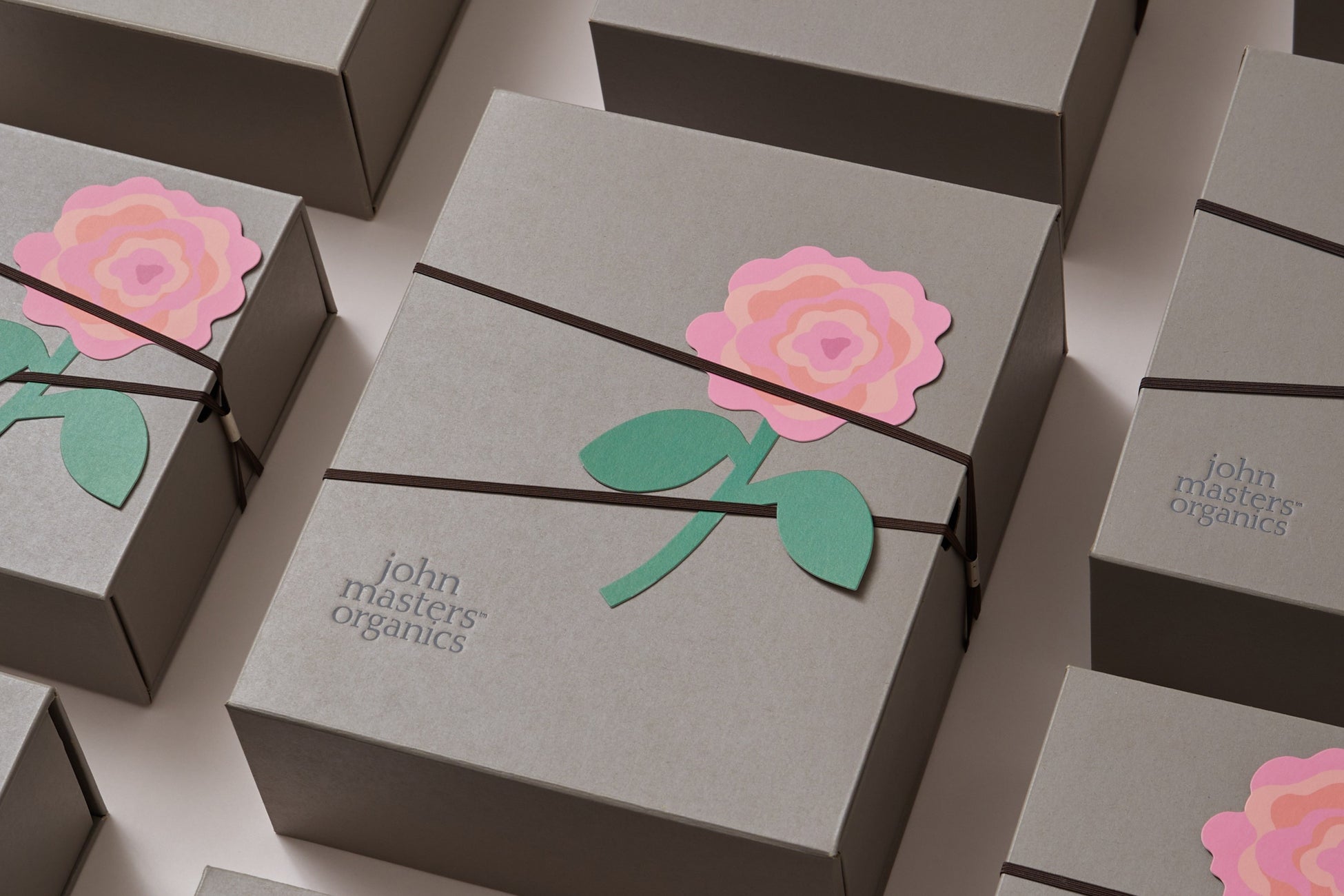 ジョンマスターオーガニックでは母の日のギフトに最適な限定のギフトラッピングを2025年4月17日(木)より直営店舗及び公式オンラインストアにて展開します。ボックスに添えられた一輪の花は、日頃の感謝の想いを伝えるメッセージカートとしてもご活用いただけます。