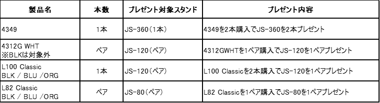 ✓ 4349/L100 Classicは、2本での購入時のみスタンドのプレゼント対象になります。1本のみ購入の場合は対象となりません。4312G WHT並びにL82 Classicはペア製品のため1セットのご購入でプレゼント対象になります。