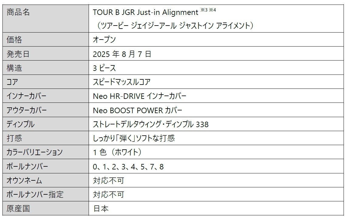 ブリヂストンスポーツ株式会社は、ゴルファーの大きな飛距離をサポートする「メガ飛び」性能を誇るゴルフボール『TOUR B JGR』に、当社独自のアライメントマークデザインを施した『TOUR B JGR Just-in Alignment』を2025年8月7日に発売します。価格はオープンです。