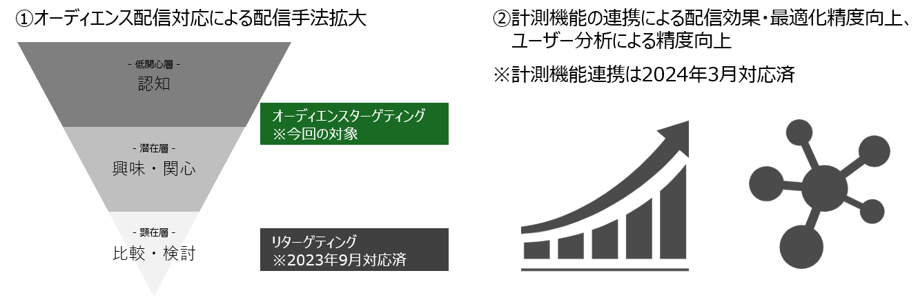 今後の3rd Party Cookie規制環境への対応強化のため、(1)プロダクト強化・(2)販売強化を軸に、3つの取り組みを実施します。