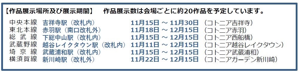 ~多世代交流複合施設コトニア6施設の保育園児たちによる100点以上の作品が駅で展示されます~