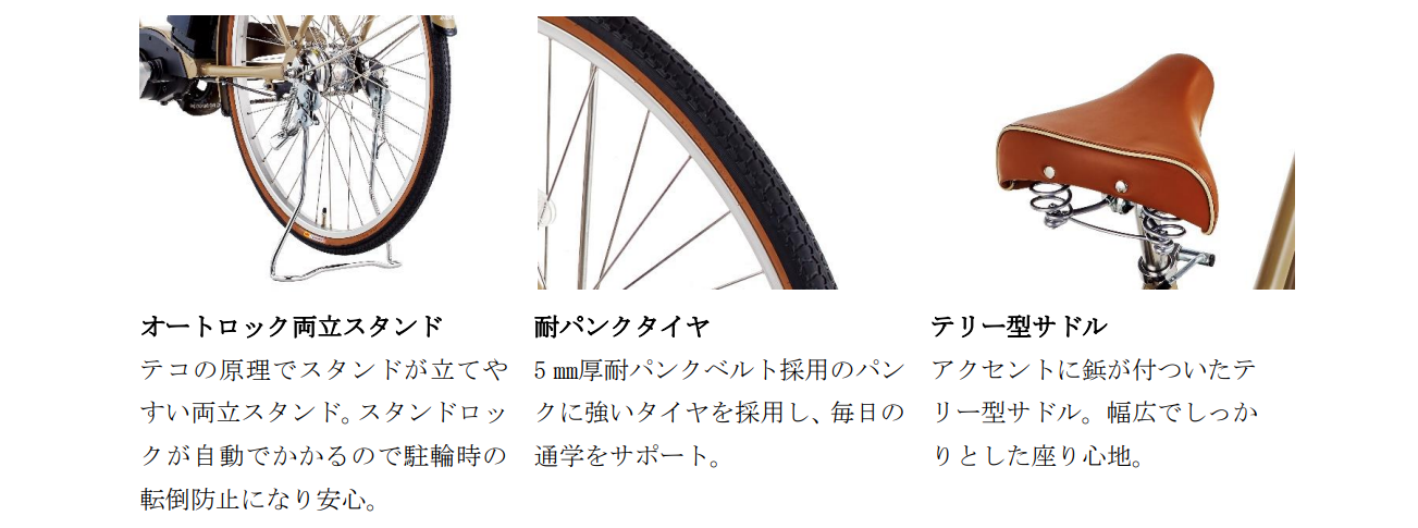 悪路や坂道も、大きな荷物を運ぶときも、早朝や暗くなった帰り道も、安心・安全の装備と力強いアシスト力で毎日の通学をサポートします。
