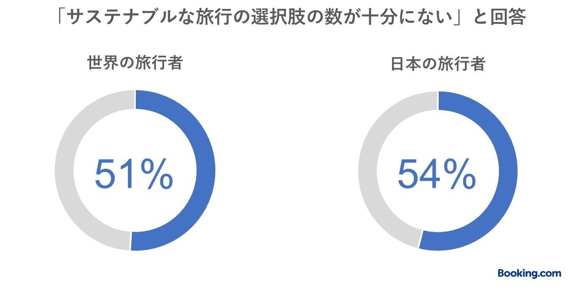 よりサステナブルな旅行のハードルとなっているのは、費用面だけではなく、限られた情報や可視化されている選択肢の少なさなども挙げられます。実際、世界の過半数(51%)の旅行者(日本の旅行者の54%)が「サステナブルな旅行の選択肢の数が十分にない」と回答しており、世界の旅行者の74%(日本の旅行者の53%)が「よりサステナブルな旅行の選択肢を旅行会社に提供してほしい」(2022年の世界66%、日本43%からそれぞれ上昇)と回答しています。