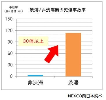 渋滞発生時の死傷事故率は、非渋滞時(渋滞していない時)の30倍以上となります。渋滞の多く発生する交通混雑期は、特に運転に注意が必要です。