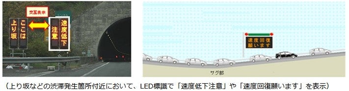 ・上り坂など速度低下を注意喚起している場所では、速度回復にご協力をお願いします。