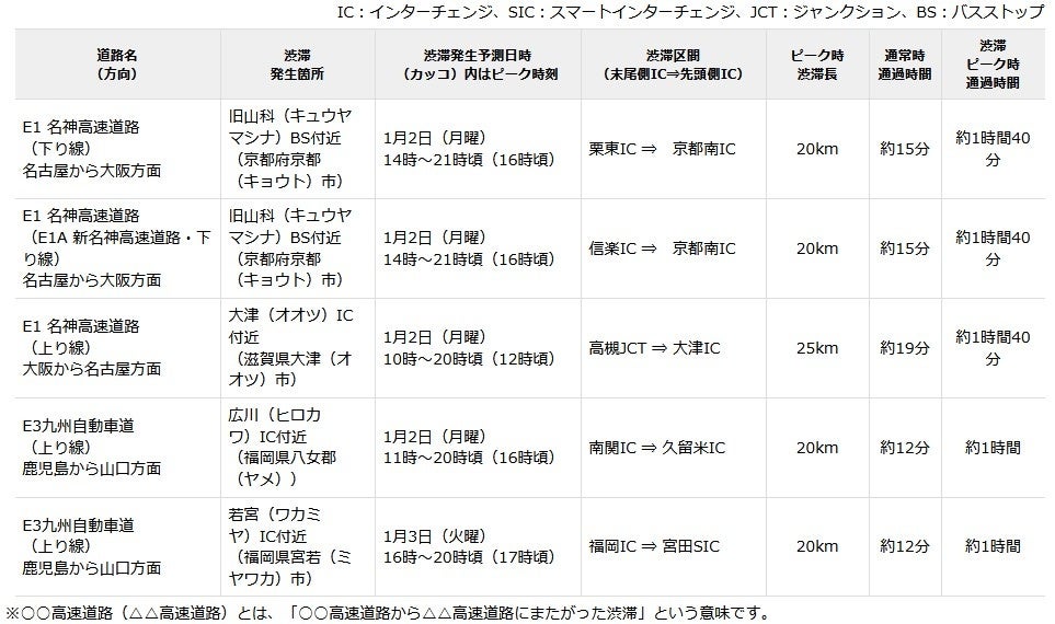 NEXCO西日本管内の年末年始期間における高速道路の渋滞予測について