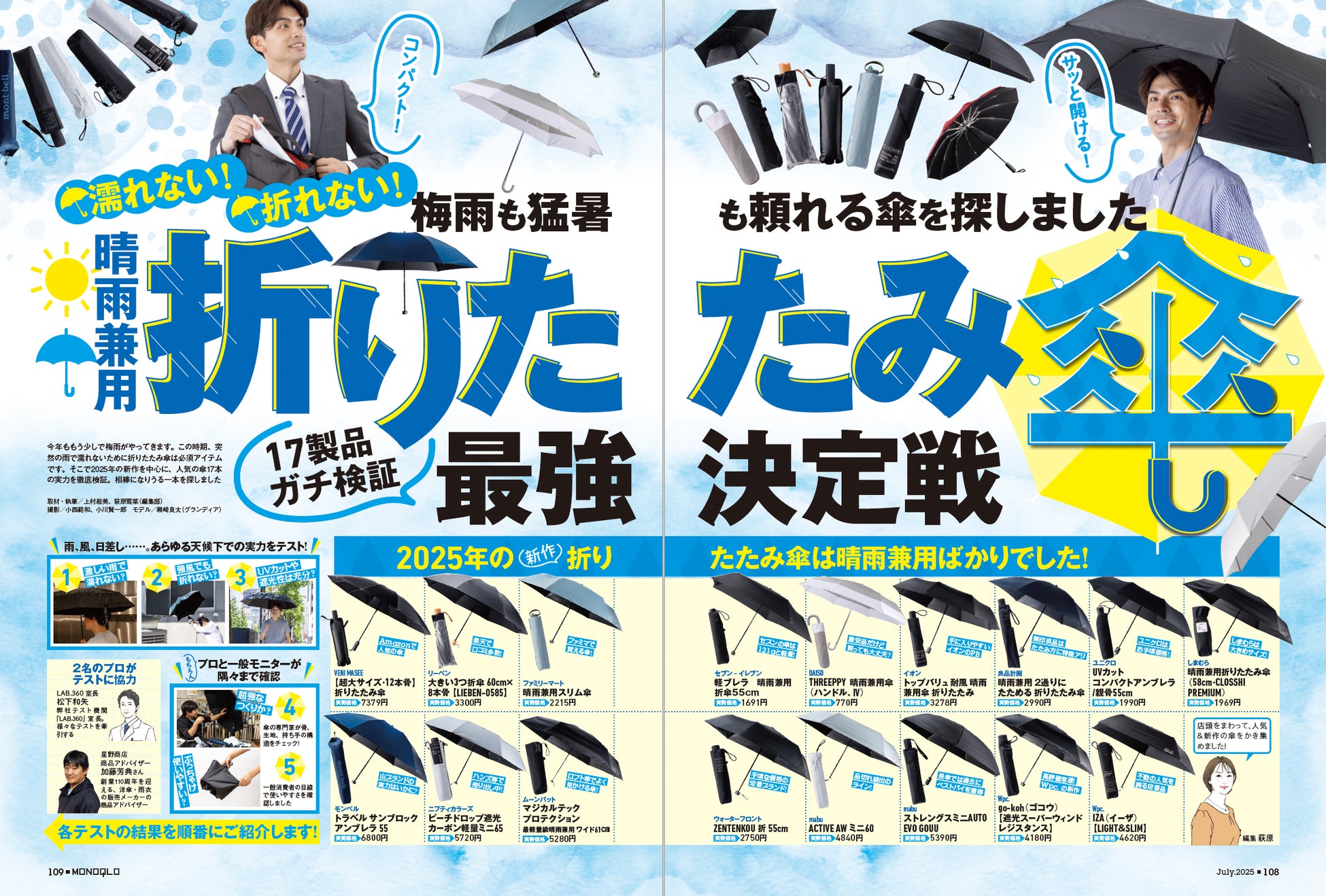 【晴雨兼用折りたたみ傘ランキング】雨・風・日差しをしっかりガード! 梅雨も猛暑も頼れる1本を探しました!!(MONOQLO2025年7月号)