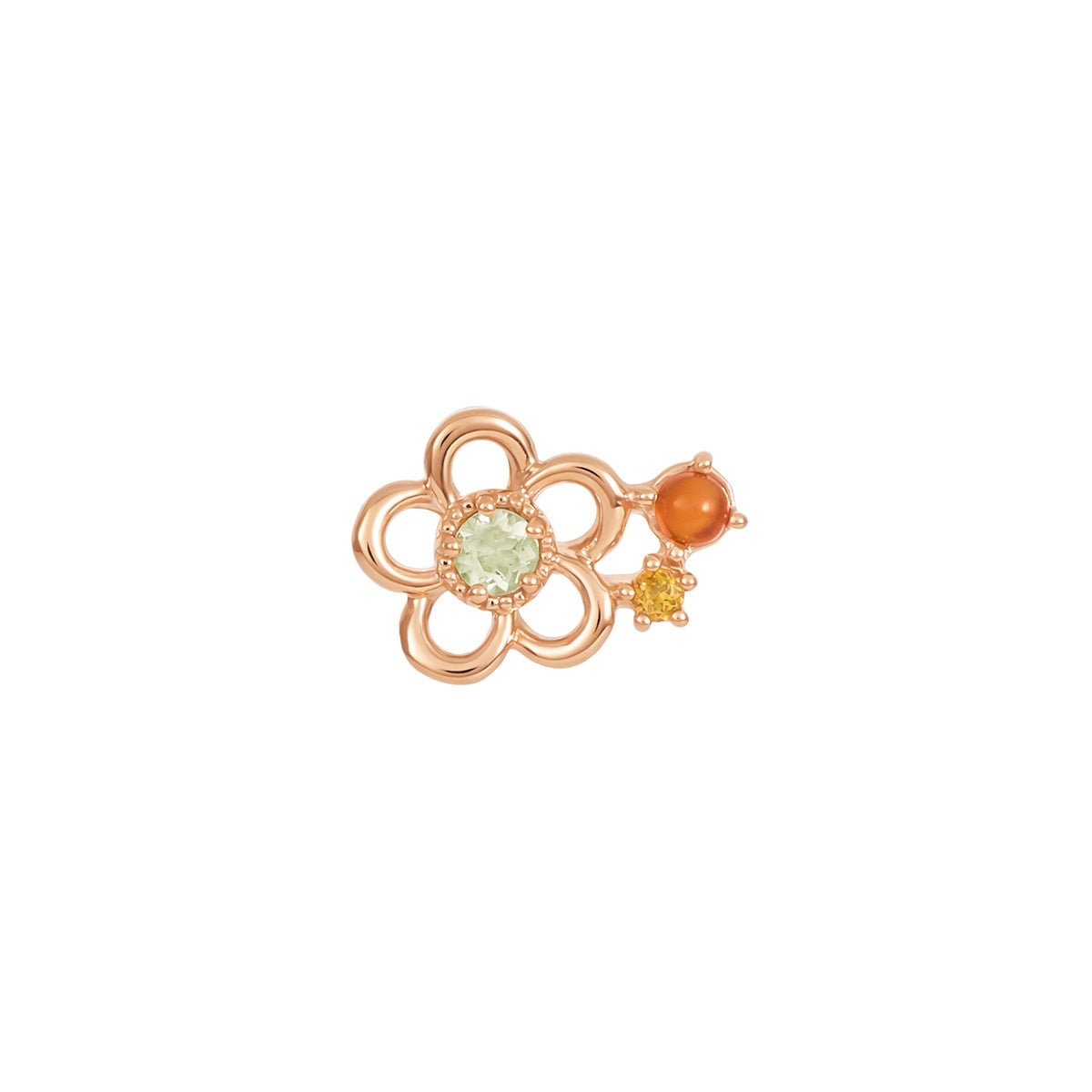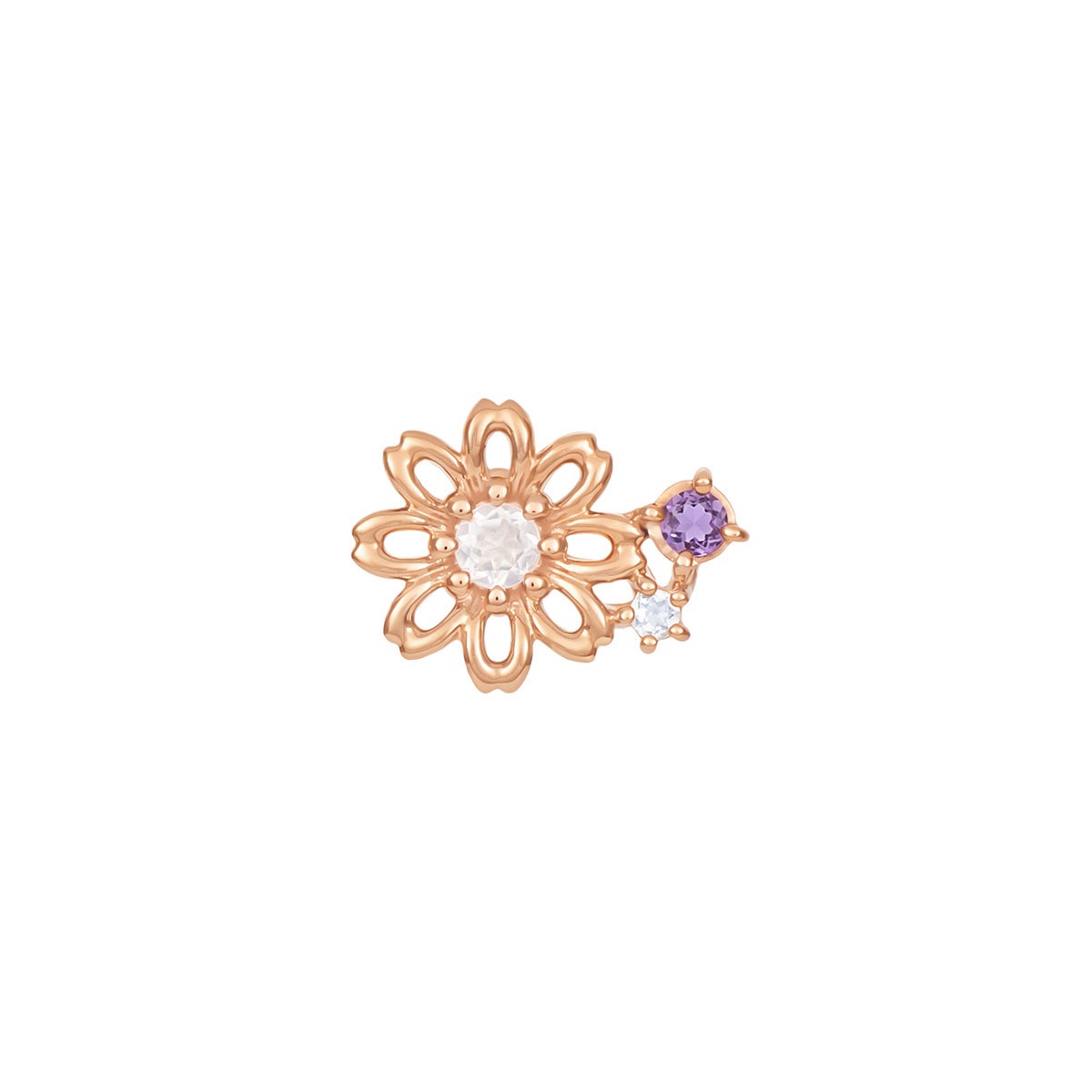 誕生花のモチーフを片耳ピアスにあしらったシリーズも。横顔からのぞくピンクゴールドカラーの地金と鮮やかな天然石の輝きが、身に着ける方の放つ魅力をより鮮明に照らします。