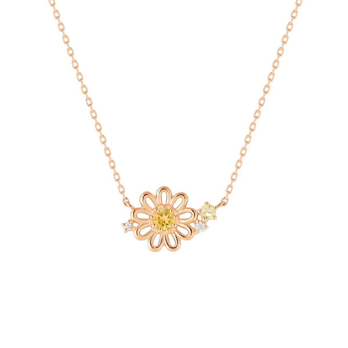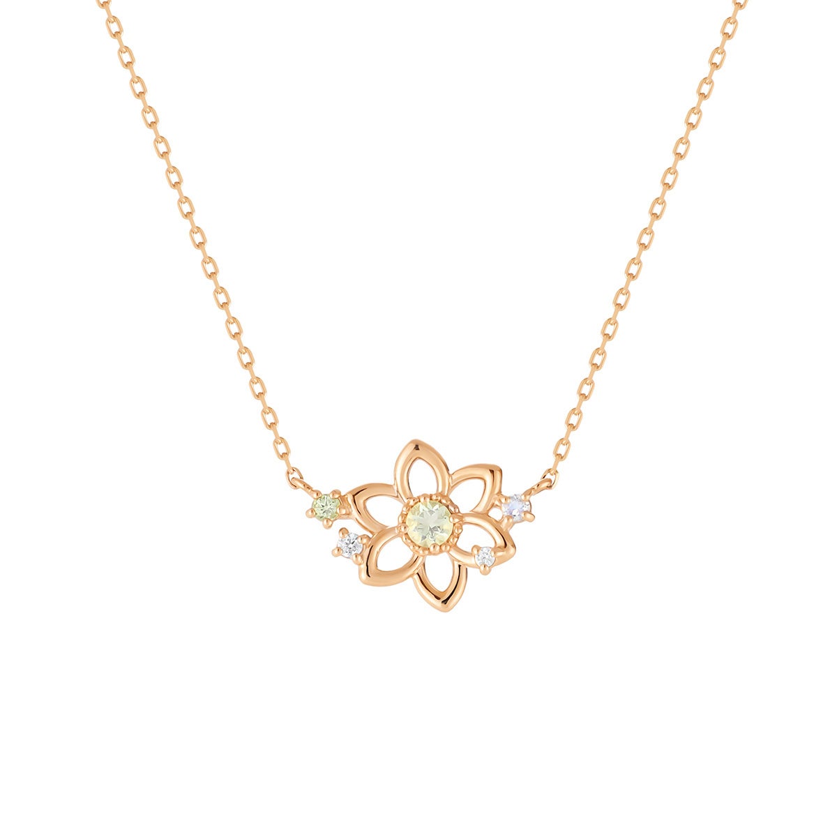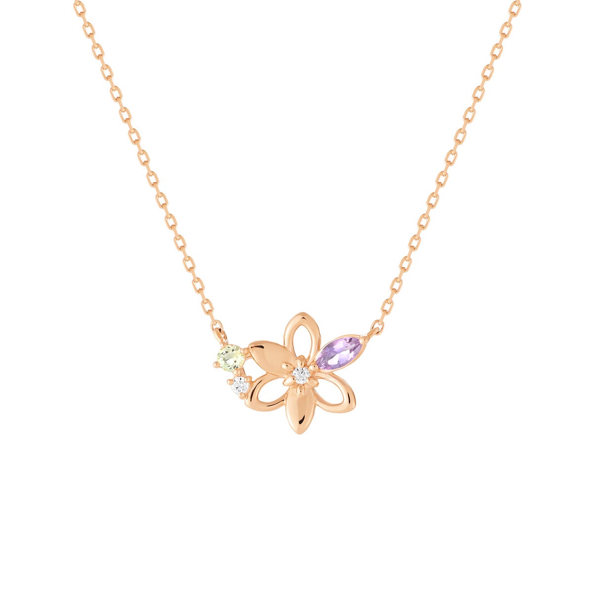 デイリーにも馴染む華奢なフラワーモチーフに、カラフルな天然石が鮮やかにきらめくデザインです。誕生花に想いを込めたさりげないジュエリーは、自分の誕生花を纏ってお守りジュエリーとしても、大切な方へ気持ちを贈るギフトとしてもおすすめです。