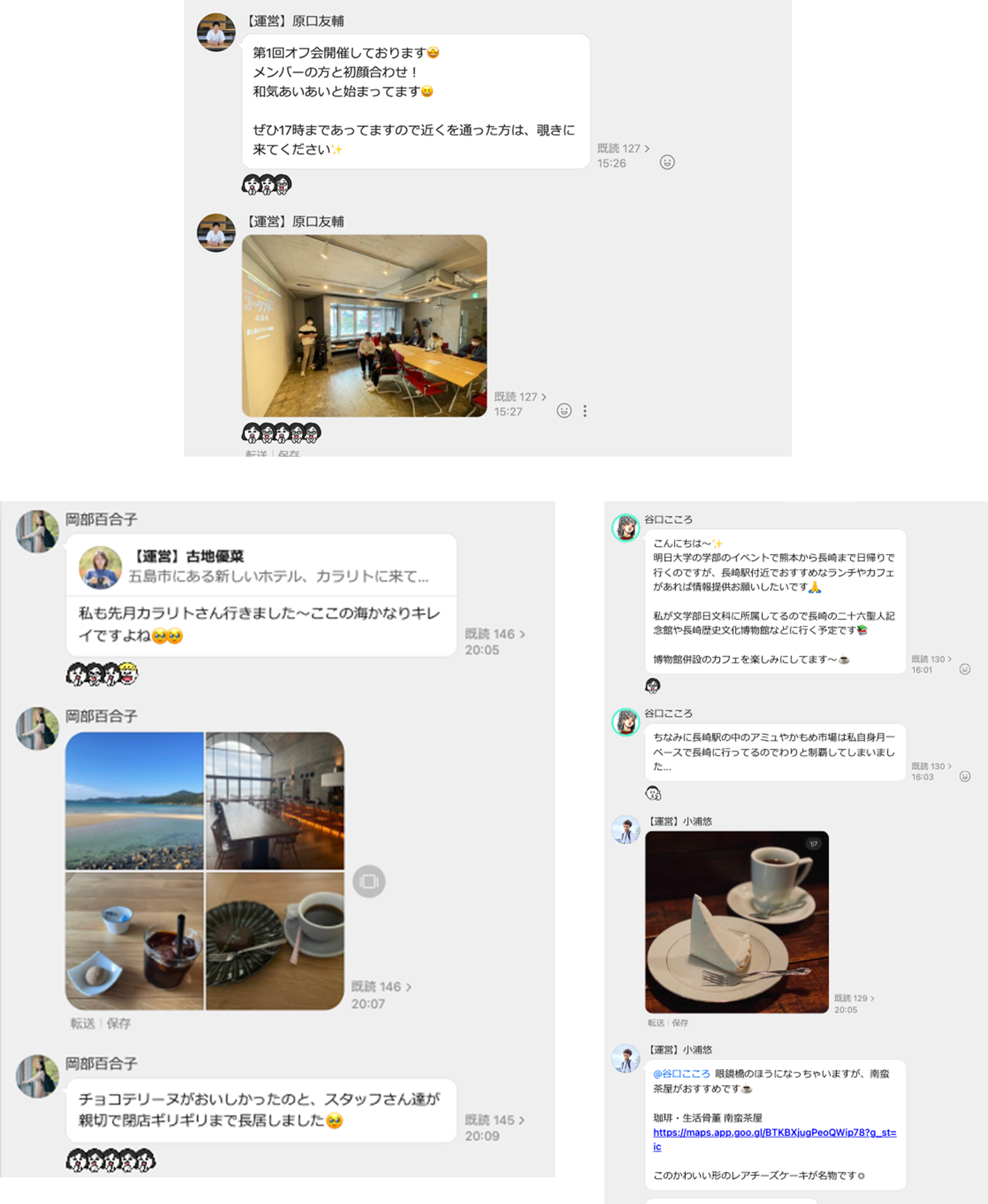 「長崎友輪家」は、これまでオフラインおよびオンラインで参加者どうしが交流する機会を設けることで、より長崎のファンになっていただく機会を創出していくことを目的に設立されました。県内外の方々が長崎の人や情報に触れられるタッチポイントとして、県内の風景や施設などの情報や、コミュニティーメンバーどうしの交流会に関する内容がトーク画面上でやりとりされており、県外在住者が県内在住者に質問をするなど、双方向コミュニケーションが積極的に行われ、コミュニティの活性化に貢献しています。2022年12月現在、「LINE WORKS」利用者数は254名(うちスタッフが10名ほど)となっており、今後さらに利用が拡大していく予定です。