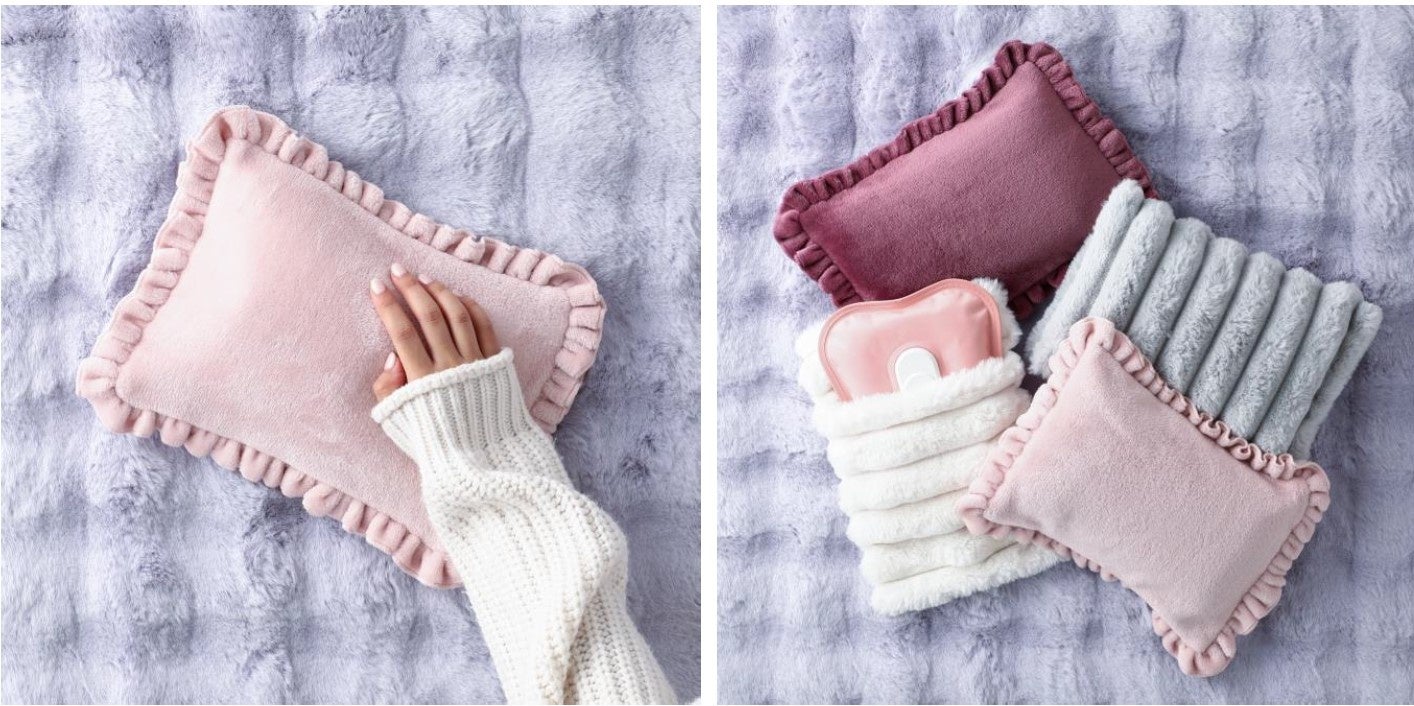 ふわふわの肌触りで体を優しく温めてくれる湯たんぽシリーズです。定番のお湯を入れるタイプと電気で温める蓄熱式タイプからお選びいただけます。身体にフィットしやすく熱すぎません。自宅でのリモートワーク時やリラックスタイムの防寒対策におすすめです。就寝前に布団を温めるベッドウォーマーとしても活躍します。丸洗いできるカバー付きなのでいつでも清潔にお使いいただけます。
