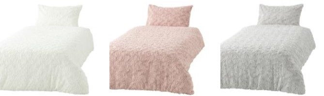 ファー生地を使用したふわふわ感がかわいい寝具シリーズです。毛足に動きのあるファーがコーディネートの華やかなアクセントになってくれます。裏面も心地よいさらっとしたなめらかなタッチで布団に入った時のヒヤっと感が少なく、秋冬の快適な入眠をサポートしてくれます。ずっと触っていたくなる触り心地の良さが魅力のシリーズです。