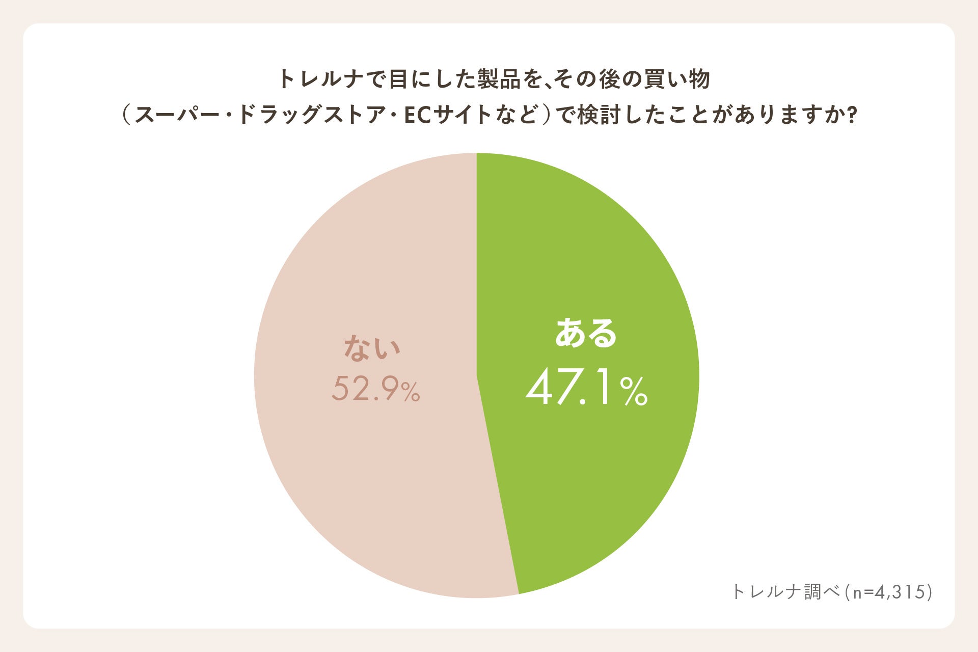 トレルナで見た商品を「購買検討したことがある」と回答した人は47.1%。広告接触後の購買行動にも影響が見られる