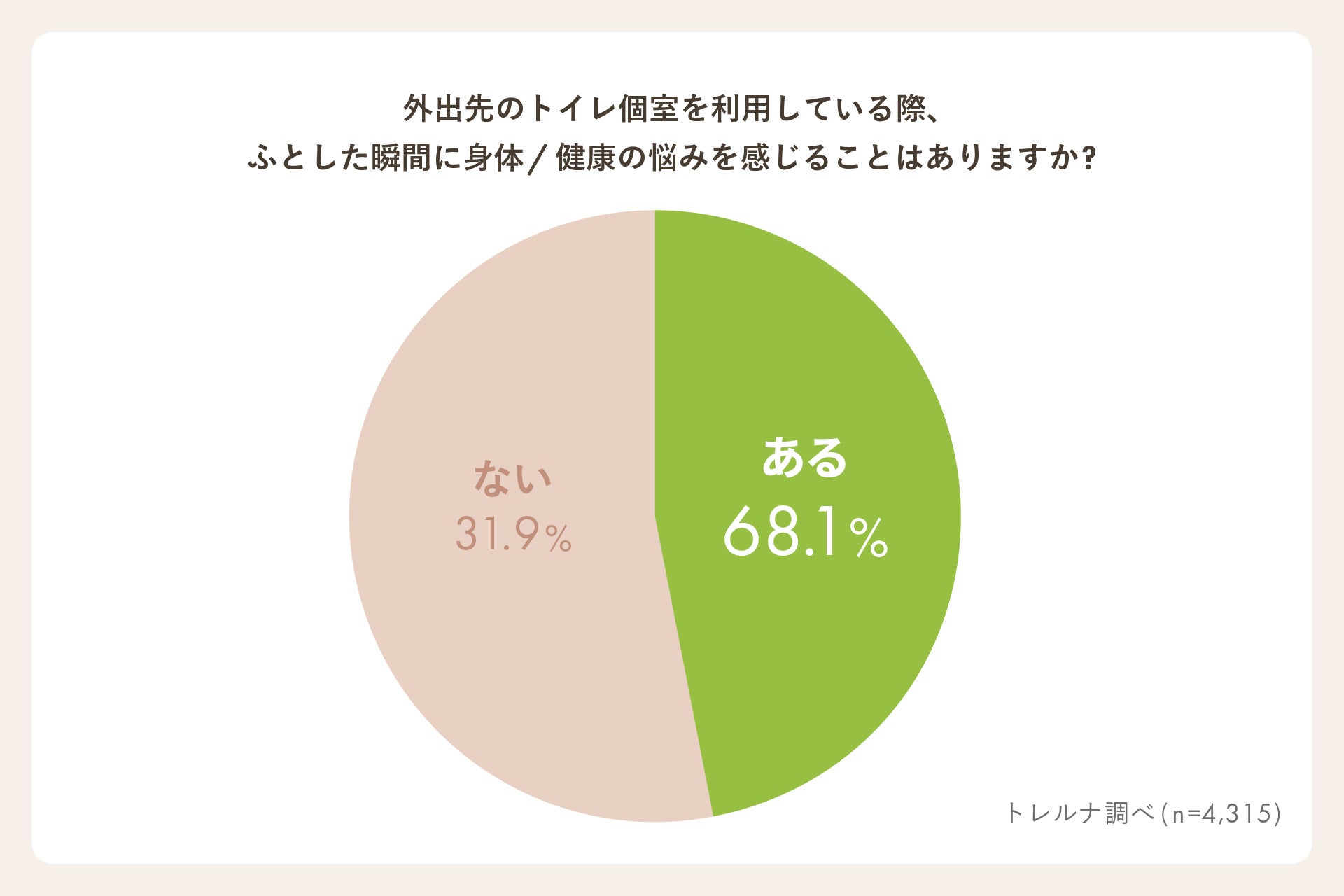 トイレ個室で健康や身体の悩みを想起すると回答した人は68.1%。一人になれる空間だからこそ、自身の状態を見つめ直す時間になっている