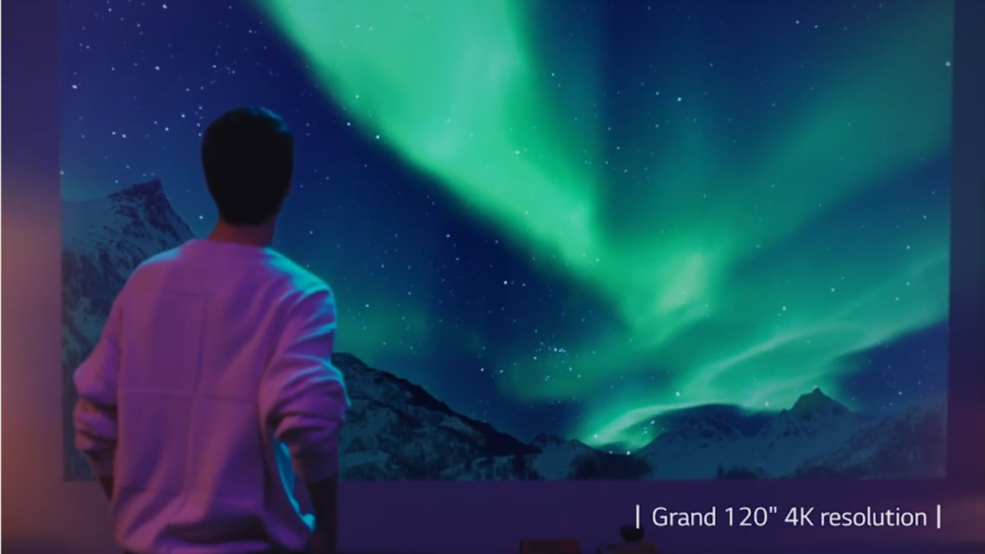 投影時には、4Kの圧倒的な映像美で、最大120インチの大画面を楽しむことができます。3チャンネルRGBレーザーと、DCI-P3 154%(全体)の色域、450,000:1のコントラスト比により、鮮明なディテールとリアルな黒を再現。想像を超える鮮明さで、映画館のような没入感を演出します。さらに、LGの最新技術によって、設置時に画面の位置を自動的に調整し、フォーカスを最適化。設定の変更や調整に時間を要することなく、置くだけですぐに最適な映像体験を提供します。