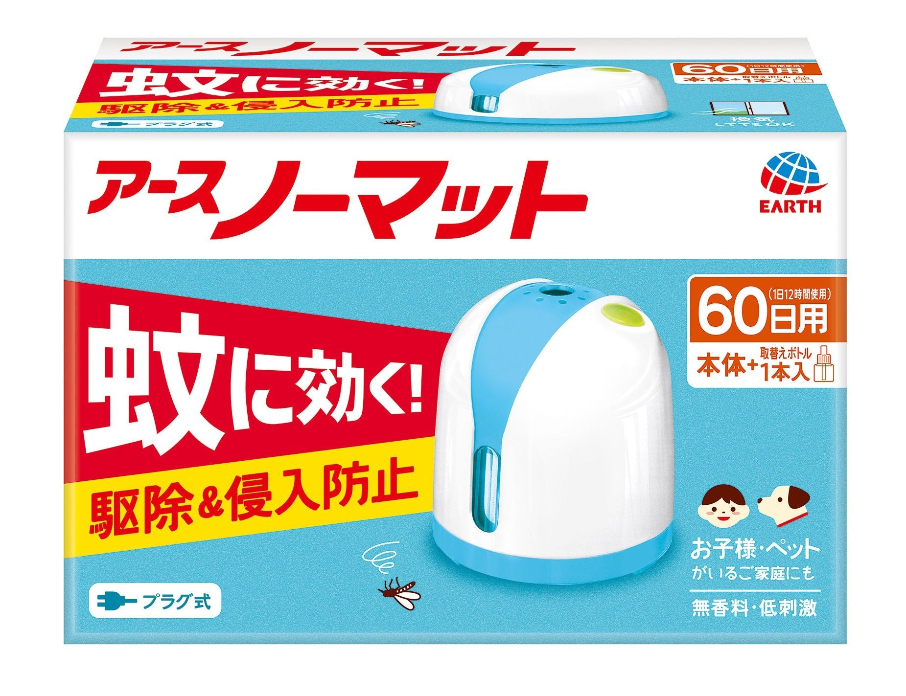 ロングセラーの蚊とり『アースノーマット』をリニューアル! 蚊の駆除・侵入防止の効果がわかりやすいパッケージに一新 新色の『ホワイトピンク』が登場!