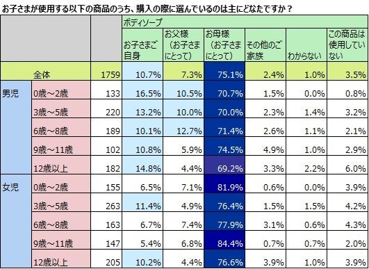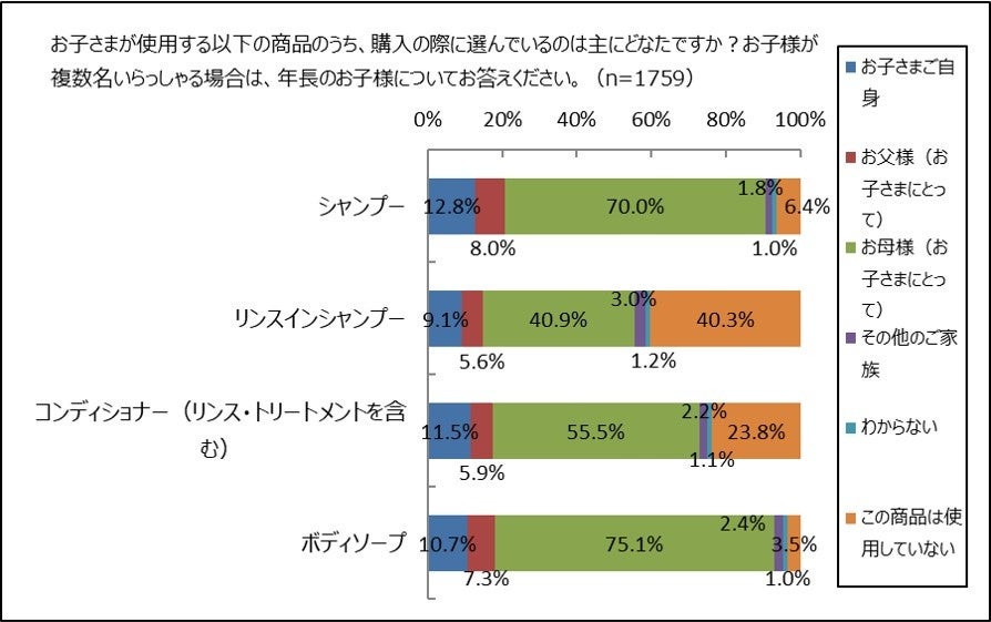 子どもが自分で選んでいるトイレタリー品は、ボディソープよりもシャンプーが多い。