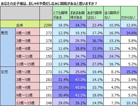 おしゃれへの意識、0歳~2歳は男女に差がない。女児のおしゃれへの目覚めは3歳~5歳。