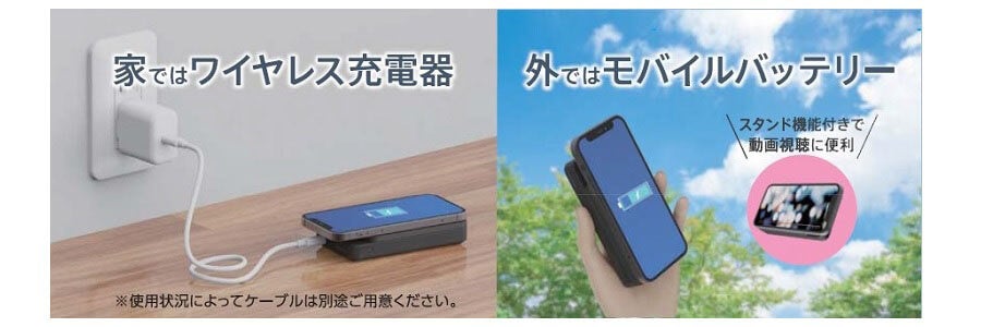 1台2役のケーブルレス充電!室内ではワイヤレス充電器になる、MagSafe対応iPhone用モバイルバッテリーを新発売