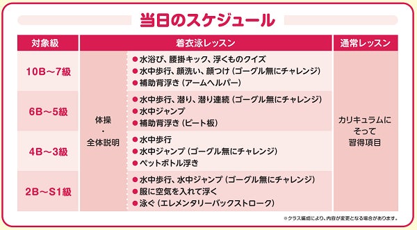 当社では、ジュニアスイミングスクールで水泳技術の習得を目指しておりますが、海や川で起こる水難事故の場面では、服を着ている、ゴーグルをしていないなど、レッスン中の環境とは異なる状態であることが多くあります。そこで、水泳技術習得だけでは得られない水難事故防止の方法をお子様と保護者様に知っていただくことで、夏休みを控えた時期、万が一に備える機会を提供したいと考えました。