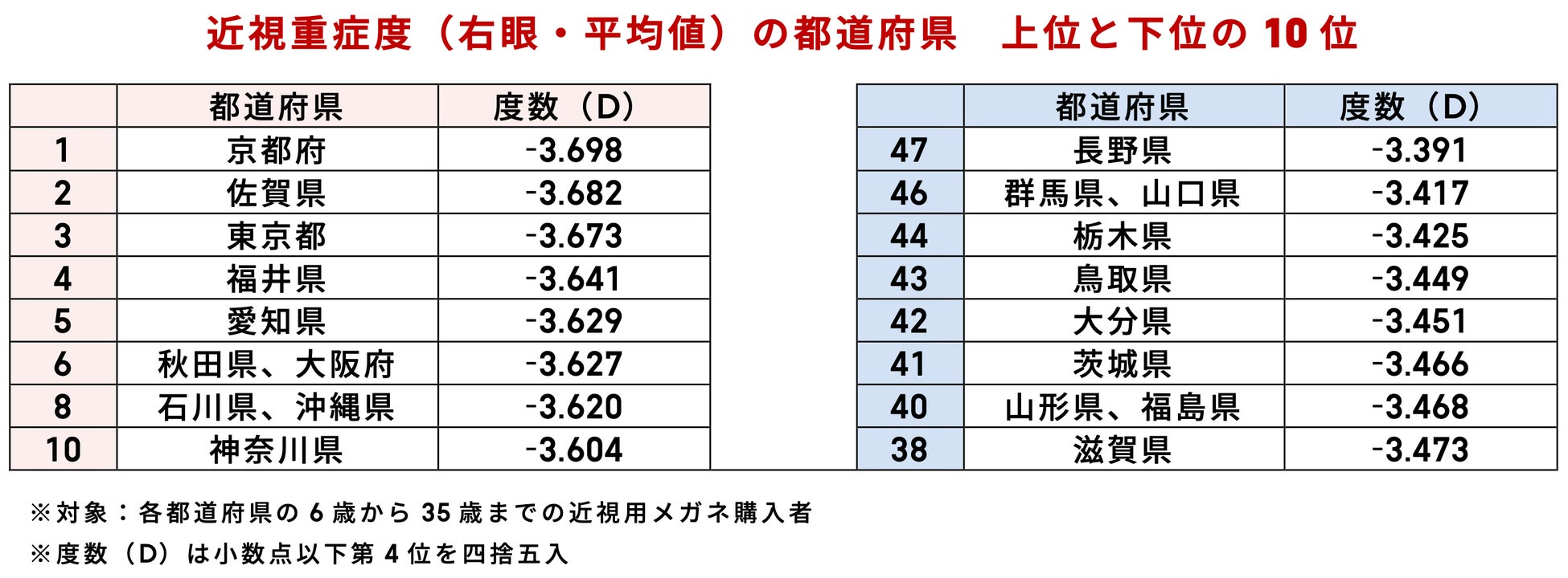 近視の重症度に地域差が。最も高いのは京都府で、最も低いのは長野県