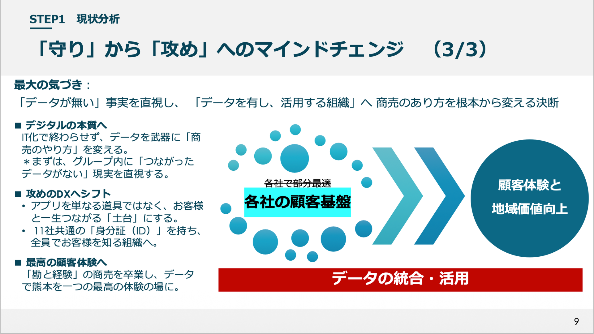 グループ11社に点在し、不完全な状態で分断されていた顧客情報を「共通ID」で統合。単なるデータ集約に留まらず、グループ全体でお客様を深く理解し、一人ひとりに最適なサービスを届ける「データドリブン経営」への進化を宣言しました。