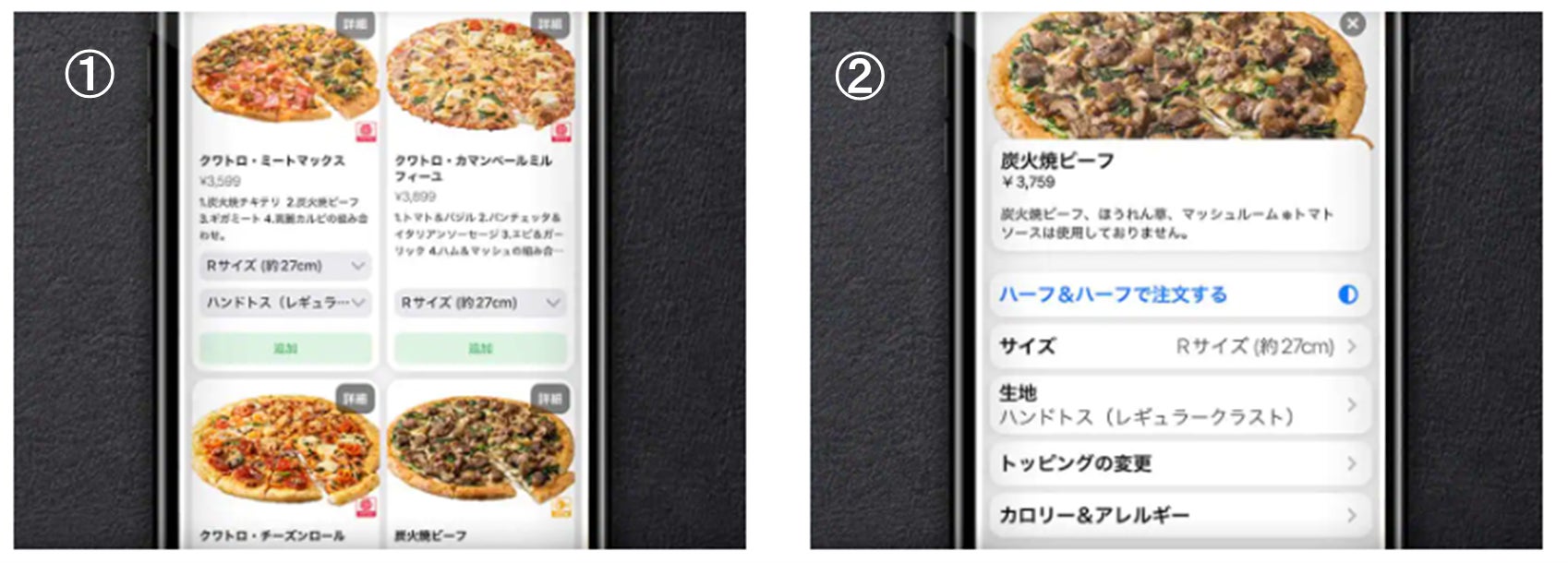 ② お好みにより「サイズと生地の変更」「トッピングの追加・削除」が可能です。