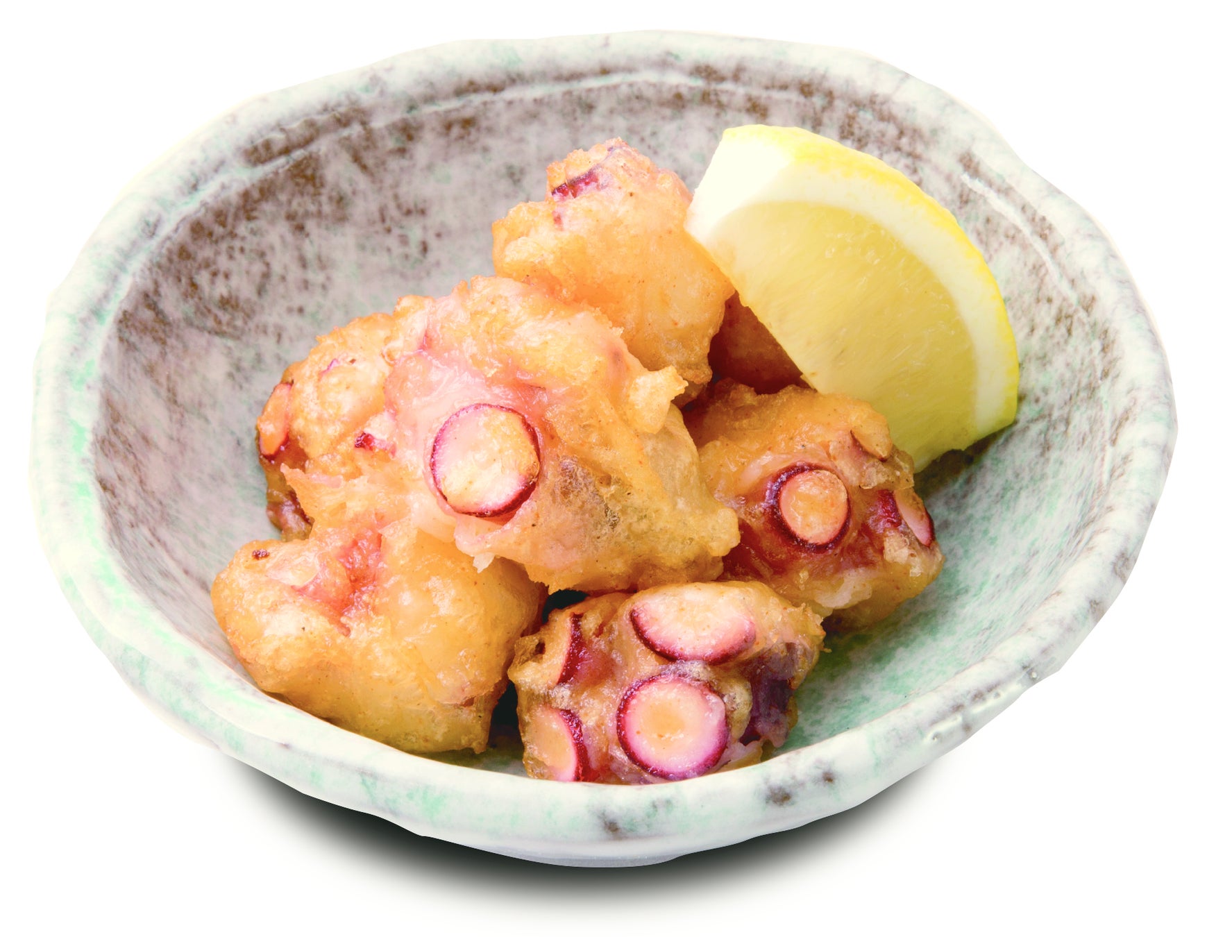プリップリのタコを使用し、噛めば噛むほどに旨味が増す “こだわり” の逸品!お召し上がりの際は、カットレモンを絞って召し上がれ!