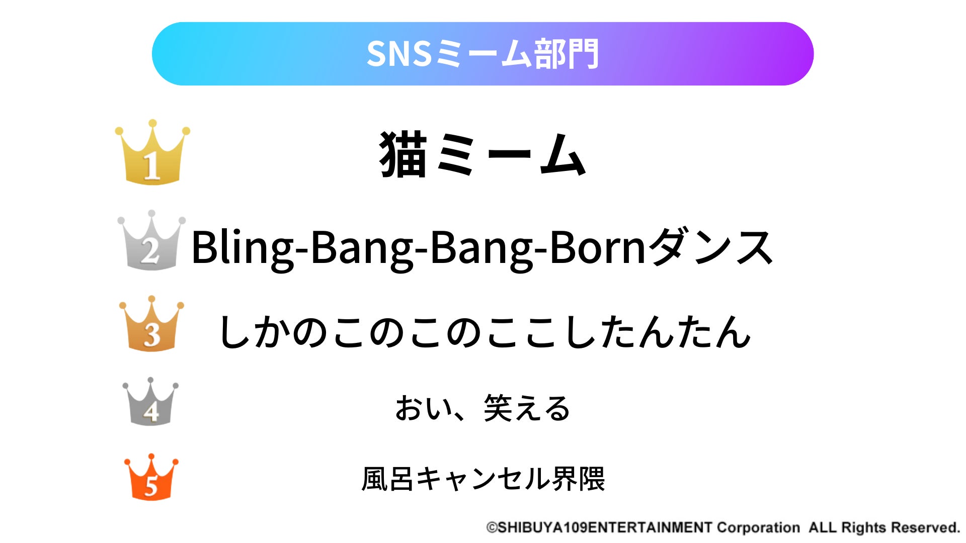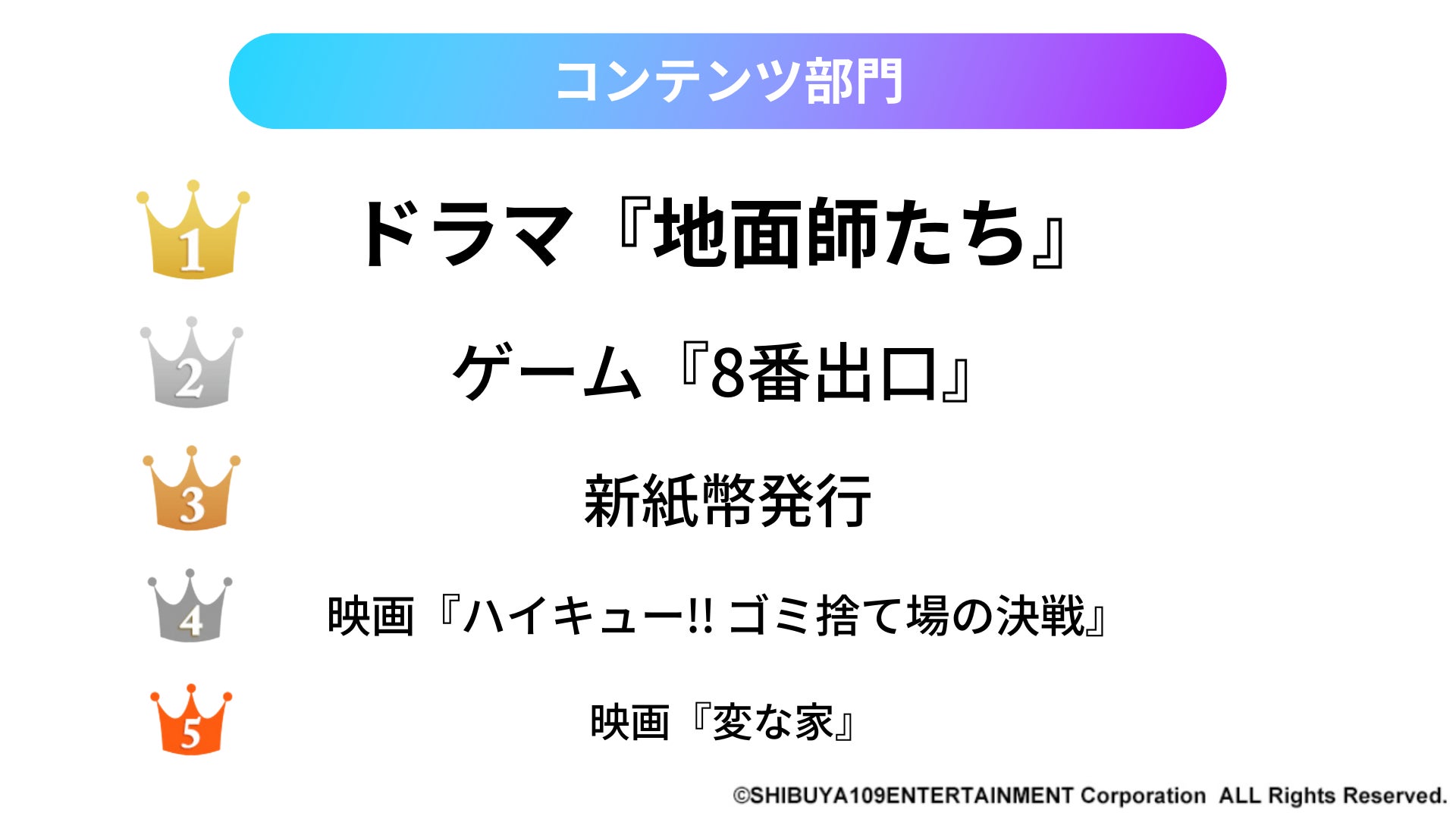 2024年9月にトレンド大会議を実施。SHIBUYA109 lab.の保有する独自ネットワーク『SHIBUYA109 lab. MATE』に所属する大学生8名とともにSHIBUYA109 lab.にて部門ごとにノミネートを選定。その後選択式アンケートを実施して大賞を決定。