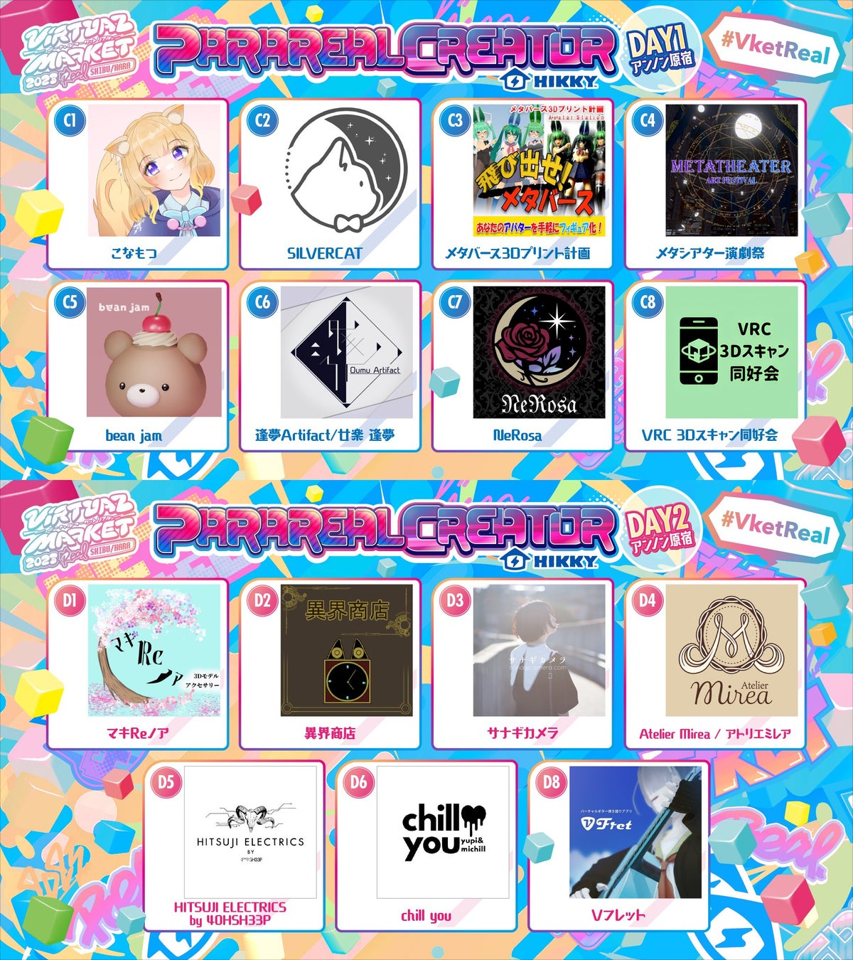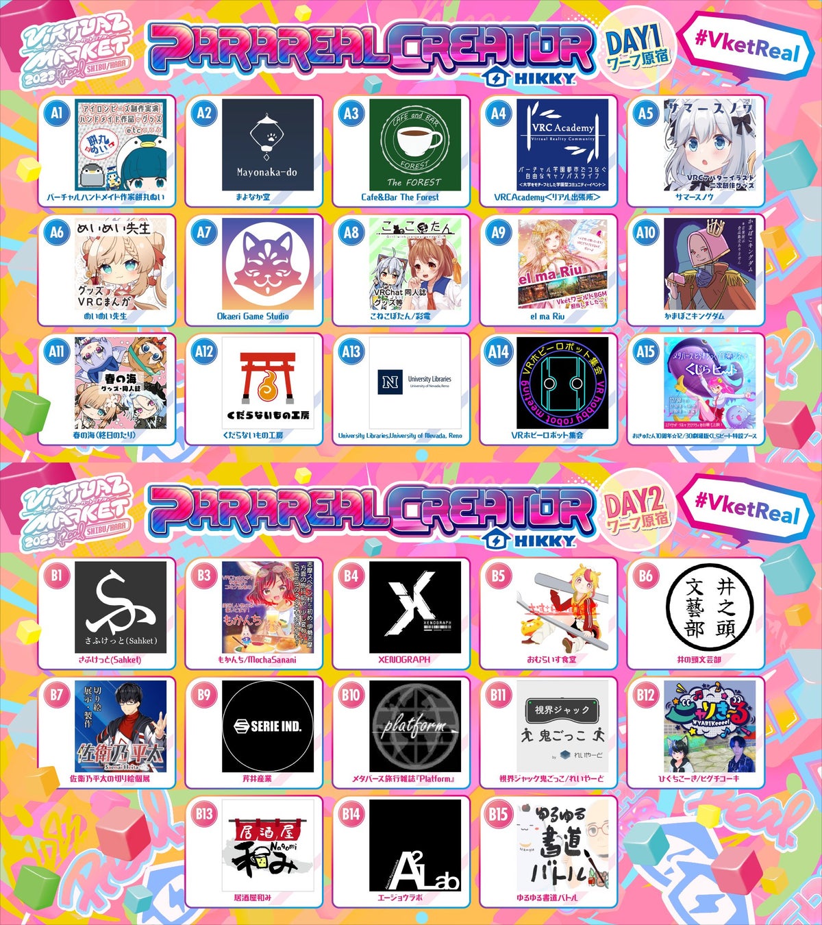 リアルとバーチャル両方で活躍するパラリアルクリエイターがブースを展示!16日は15ブース、17日は13ブースが出展いたします。パラリアルな作品をぜひお楽しみください。