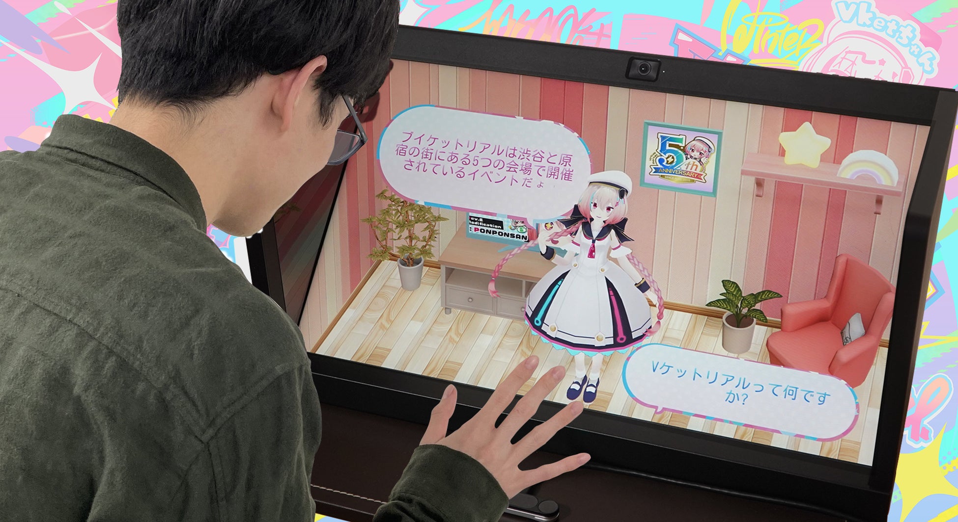 また、裸眼で立体視体験ができる空間再現ディスプレイ『ELF-SR2』を使い、HIKKYが制作したバーチャルマーケットの公式キャラクターVketちゃん1号と 、日本語のみならず様々な言語で音声での会話が可能な「マルチリンガルインターナショナルVketちゃん1号」を紹介。画面上に登場したAIキャラクターとの会話を多言語でお楽しみください。