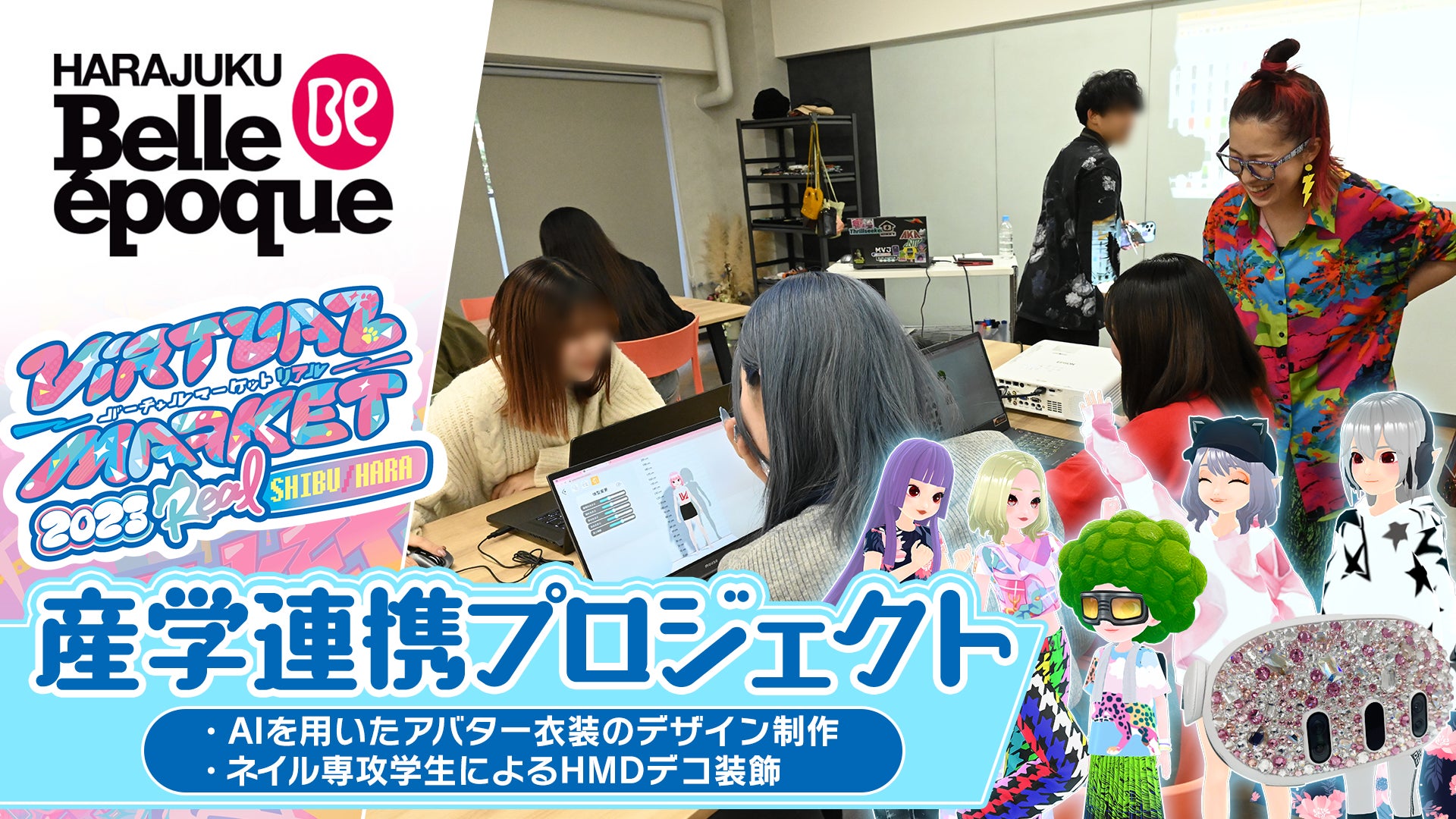 原宿に校舎を構える「ベルエポック美容専門学校」とコラボレーションした、産学連携プロジェクトを実施いたします。HIKKYのクリエイティブ責任者・さわえみかが、AIを用いたアバター衣装のデザイン制作の授業をベルエポック専門学校・ファッション専攻の学生へ実施し、本授業で学生が作成した衣装を着用したアバターを、AVATAR MEETSにて展開します。さらにネイル専攻の学生がデコレーションを施したVRHMDを、ヒンメルブラウ原宿に展開するHIKKYブースにて展示!原宿らしい可愛さ満点のHMDをぜひ見に来てください。