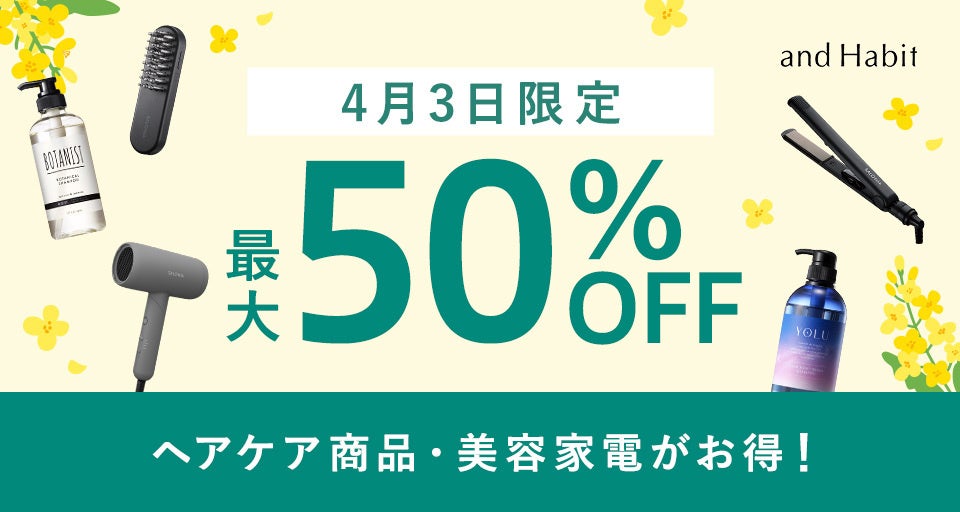 SALONIA・YOLU・BOTANISTなどの有名ヘアケアブランドを取り扱う「アンドハビット」において、最大50%割引セールや最大20%のポイント還元、割引クーポンでおトクにご購入いただけます。