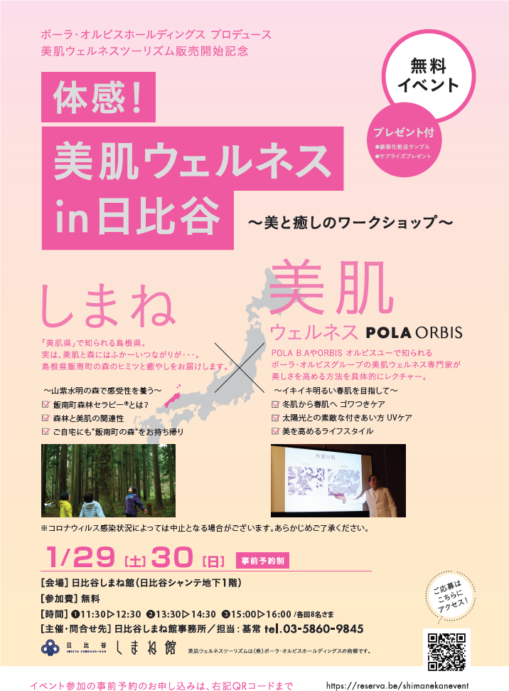 当ツアー発売開始を記念し昨年12月に日比谷しまね館で行ったイベントが大好評だったため、アンコール開催を致します!東京にいながら「美肌ウェルネスツーリズム」をダイジェストで体感できる当イベント。内容も前回から更に磨きをかけ、美と癒しに満ちた時間をお届けします。参加者の方限定で素敵なプレゼントもご用意し、皆さまのお越しをお待ちしております。
