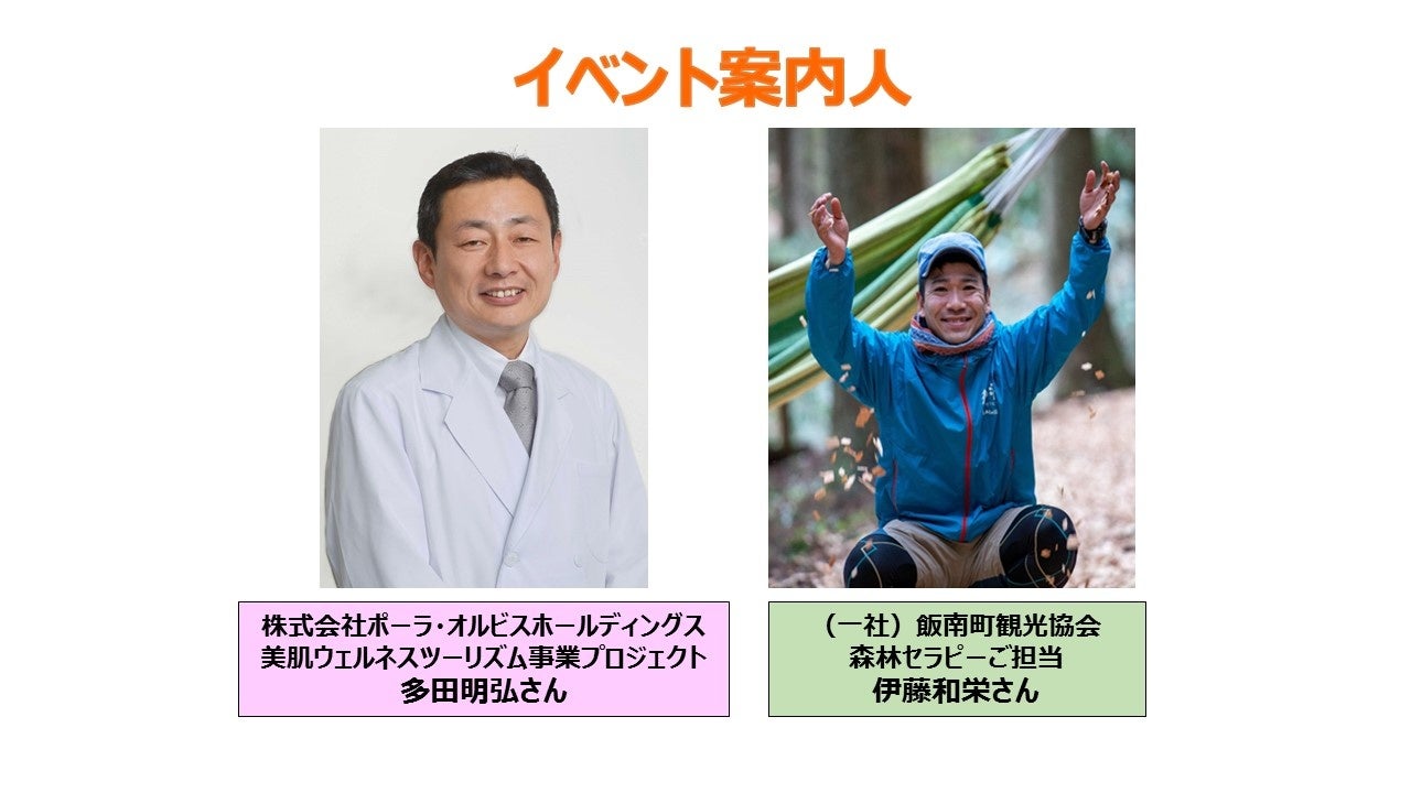 心身ともに美しくあることこそ"美肌"であると提唱する本ツアーに倣い、株式会社ポーラ・オルビスホールディングスの美肌ウェルネス専門家をお招きしての美容法レクチャーと、飯南町観光協会の森林セラピー担当者によるワークショップを行います。