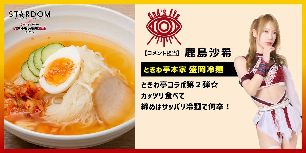 なお、3月29日(土)~4月10日(木)、コラボ実施店に来店していただいた方にときわ亭公式アプリより送付するメッセージから応募いただくと、抽選で同じく4月27日(日)「スターダム」横浜アリーナ大会のチケットを10組20名様にプレゼントいたします。