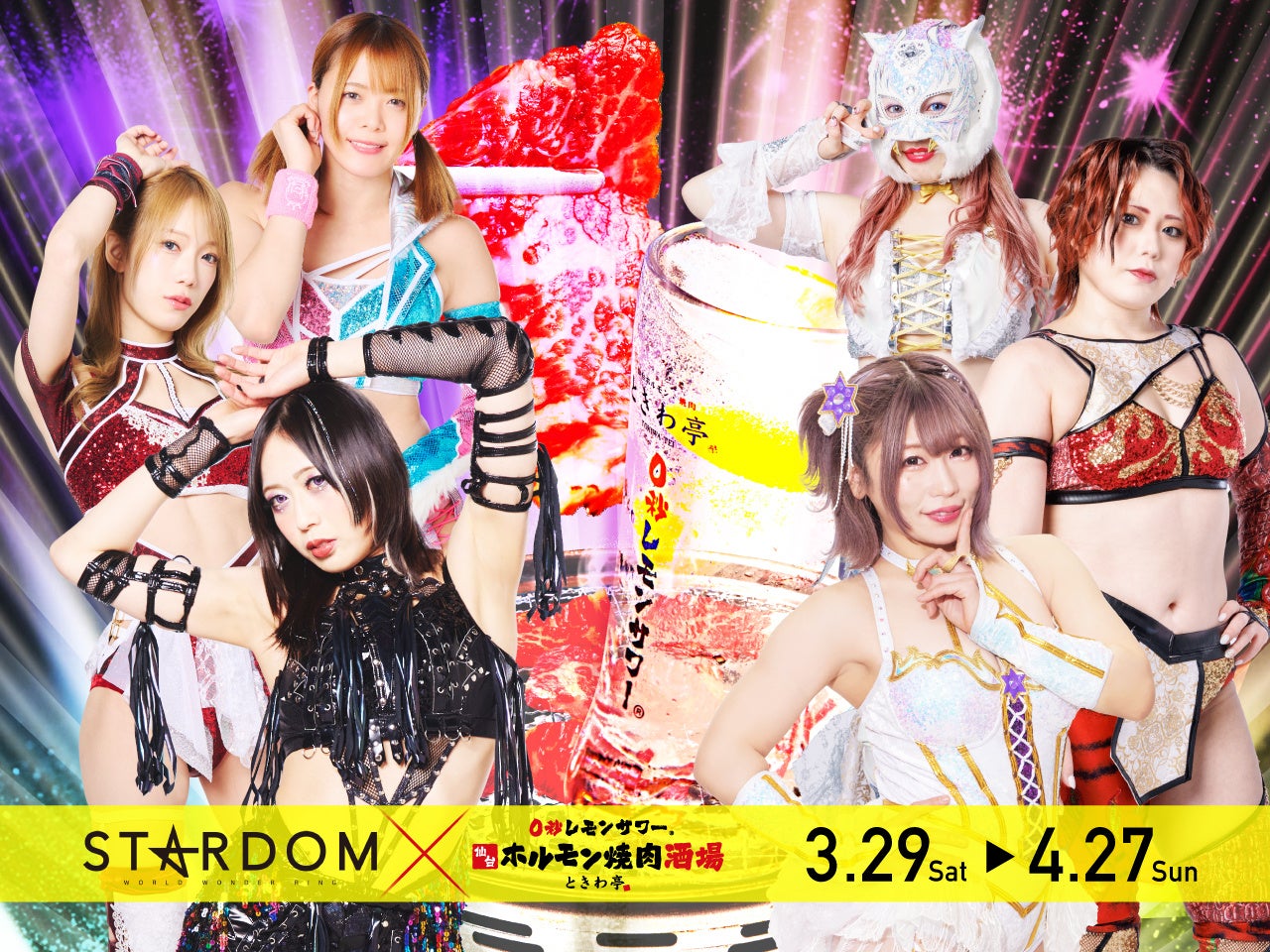 GOSSO株式会社は、「0秒レモンサワー®仙台ホルモン焼肉酒場 ときわ亭」渋谷店など9店舗で、3月29日(土)〜4月27日(日)の期間限定で、女子プロレス団体「スターダム」とのコラボキャンペーンを開催いたします。https://store.zero-tokiwa.com/