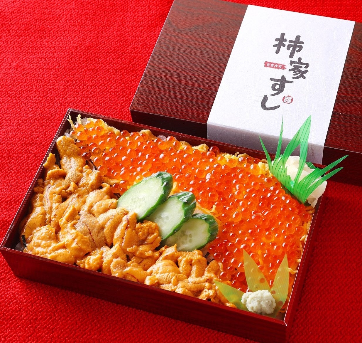 とろける濃厚で贅沢な旨みの「生うに」と、粒選りの「いくら」をたっぷりとのせた、柿家すしの中でも一番贅沢なお重です。